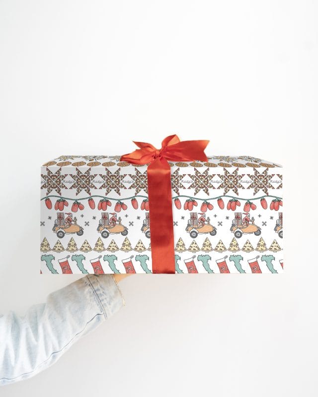 We can’t wait to see your present wrapping with our Rudy’s wrapping paper. Don’t forget to share your pictures and tag us @wearerudyspizza on instagram. We are going to be giving out spot prizes to our favourite pics.